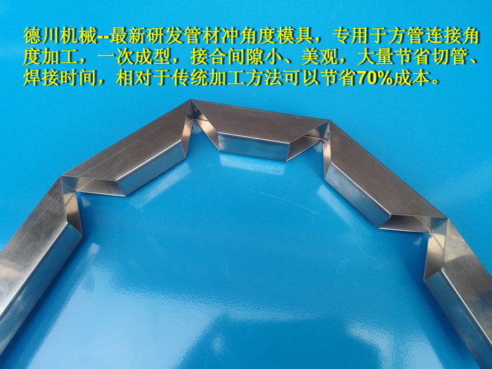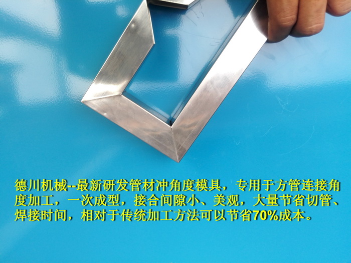 德川機械--最新研發(fā)管材沖角度模具,專用于方管連接角度加工,一次成型,接合間隙小、美觀,大量節(jié)省切管、焊接時間,相對于傳統(tǒng)加工方法可以節(jié)省70%成本。...