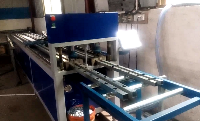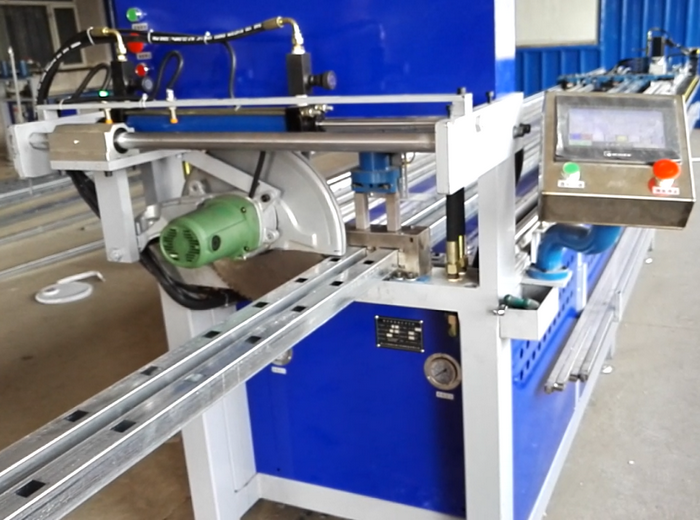 數(shù)控護欄沖孔機,兩工位同時工作,一次沖四支管,每個油缸可單獨控制沖全孔、半孔,大大提高護欄沖孔效率