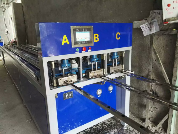 三工位數(shù)控全自動不銹鋼沖孔機,三工位同時工作,一次沖6支管,每個油缸可單獨控制沖全孔、半孔,大大提高不銹鋼防盜網沖孔效率,行業(yè)首創(chuàng),專利產品......