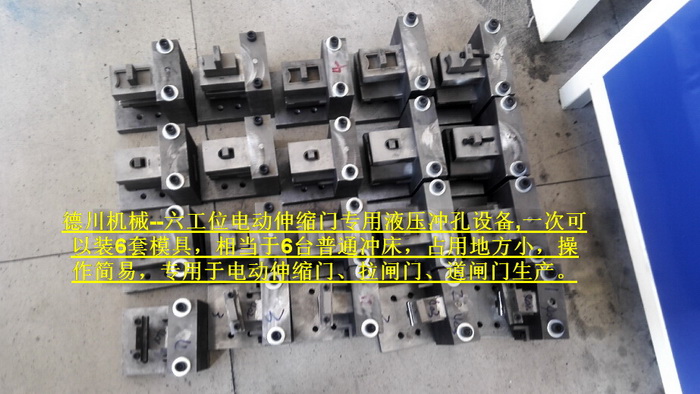 六工位電動伸縮門專用液壓沖孔設(shè)備,一次可以裝6套模具,相當(dāng)于6臺普通沖床,占用地方小,操作簡易,專用于電動伸縮門、拉閘門、道閘門生產(chǎn)。...