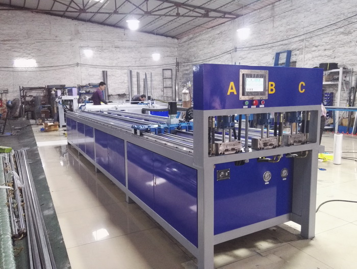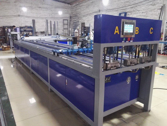 福建漳州客戶今年第二臺三工位數(shù)控全自動沖孔機,三工位同時工作,一次沖6支管,每個油缸可單獨控制沖全孔、半孔,大大提高不銹鋼防盜網(wǎng)沖孔效率,行業(yè)首創(chuàng),專利產(chǎn)品